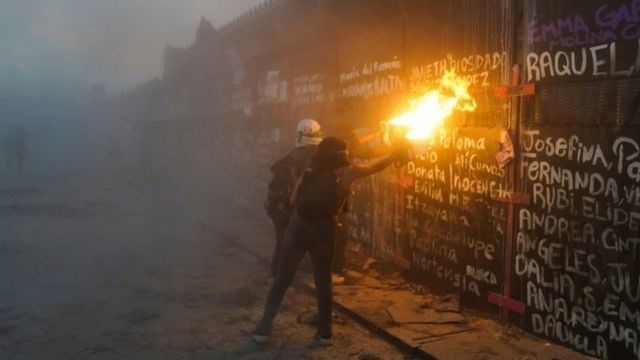Así, los primeros disturbios se produjeron en el histórico Zócalo, frente al Palacio Nacional, donde los intentos de las manifestantes de derribar las vallas para aproximarse a la sede presidencial acabaron en enfrentamientos con las fuerzas de seguridad, que arrojaron gas de extintores sobre las mujeres y cargaron para dispersarlas.