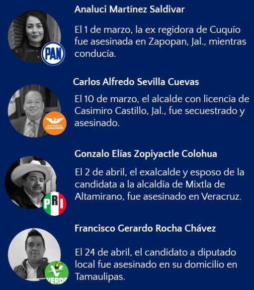 Pero Murrieta está lejos de ser el primer candidato en caer víctima de un ataque durante la campaña para las elecciones intermedias de México que concluyen el 6 de junio.