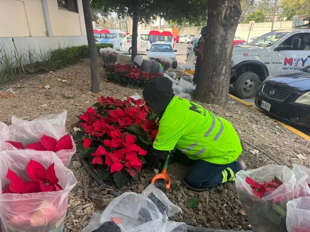 Trabajadores de Servicios Públicos sembraron a lo largo de diversas avenidas de las flores de “nochebuena” que cambian la imagen urbana durante las fiestas decembrinas.
