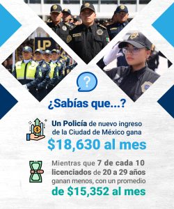 Es así como del 2019 al 2026, se ha logrado un aumento superior al 95% en las percepciones de las y los policías, convirtiendo a la Ciudad de México en una de las entidades con el mayor incremento al salario policial en los últimos años, consiguiendo que en 2024 éste finalmente se posicionara 6% por encima del salario digno policial estimado por la Comisión de Salarios Mínimos para la Ciudad de México para ese mismo año.